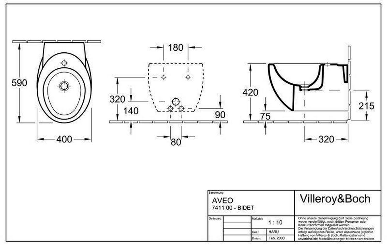 Биде подвесное Villeroy & Boch Aveo plus 7411 00R1 alpin| 40x34x59