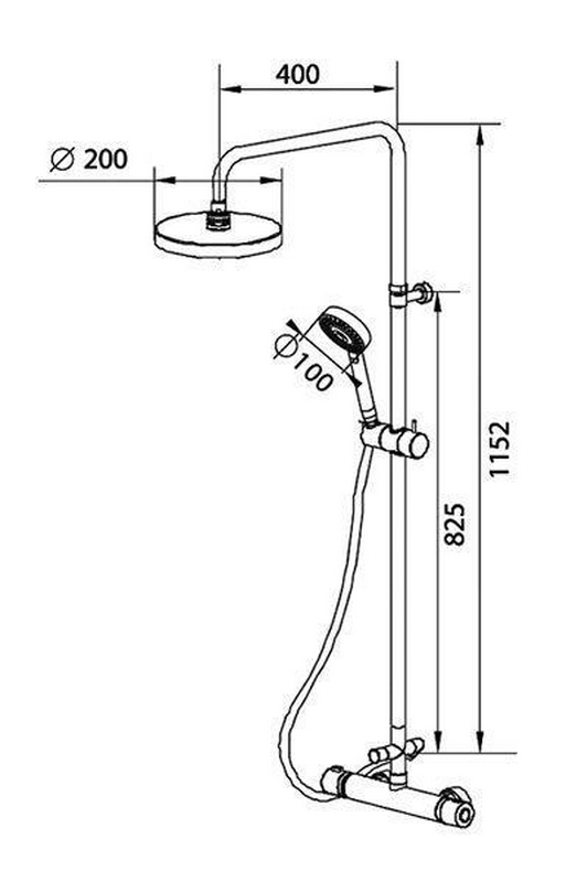 Душевая стойка Tender Supreme для душа с термостатом, штанга 1152 мм, верхний душ - 200 мм, ручной душ - 100 мм, хром XX