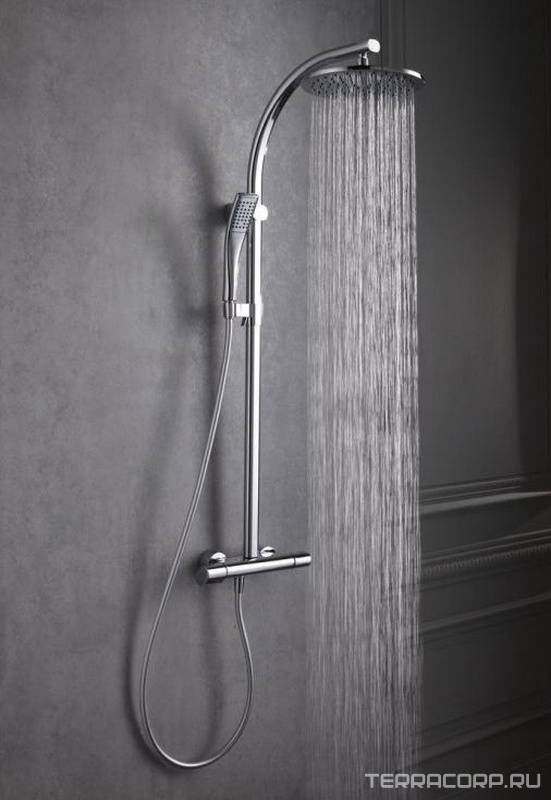Душевая колонна Talan с термостатическим смесителем и круглым верхним душем d255 мм , шланг и душ.лейка ЕО small, хром KL