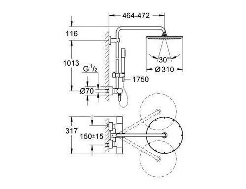 Душевая система с термостатом для душа с верхним душем Rainshower Cosmo 310 мм, ручной душ Sena, душевой шланг 1750 мм, хром XX