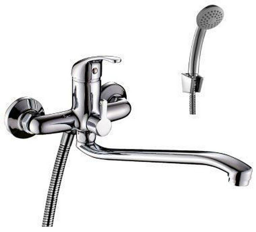 Смеситель для ванны/душа, длинный излив, с душевым гарнитурам, хром ZZ