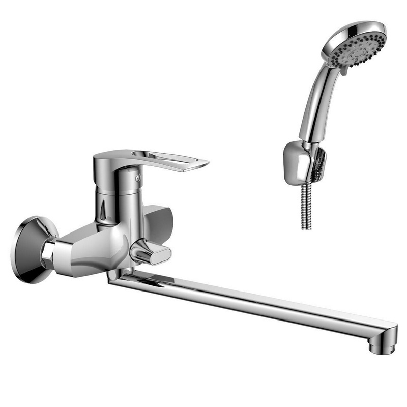 Смеситель для ванны/душа, длинный излив 350 мм, с установочным комплектом и аксессуарами, хром ZZ