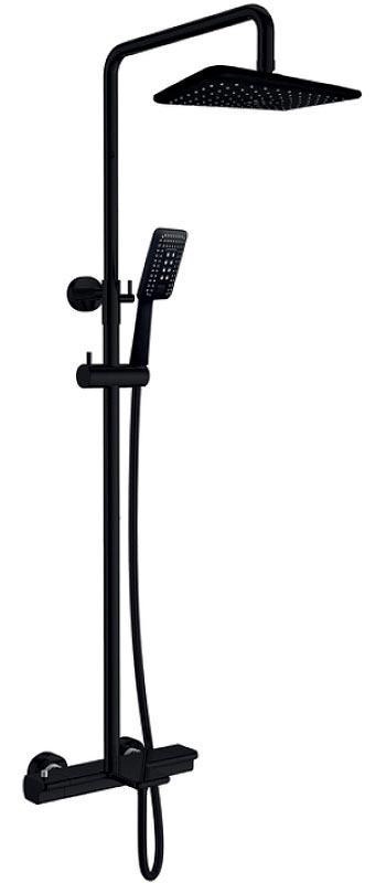 Душевая стойка для душа с термостатом (душевой шланг, ручной + верхний душ), цв. черный матовый ZZ