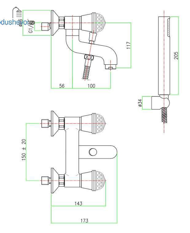 Смеситель Fiore XT Sky 17CR0510 для ванны с душем| 21x15x17
