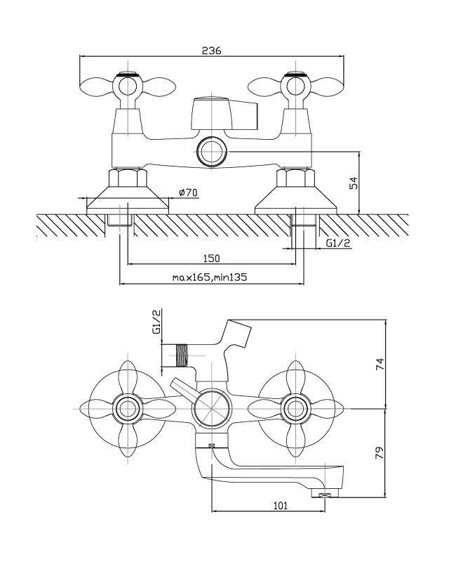 Смеситель Agger Retro A1921200 для ванны с душем| 23x15x16