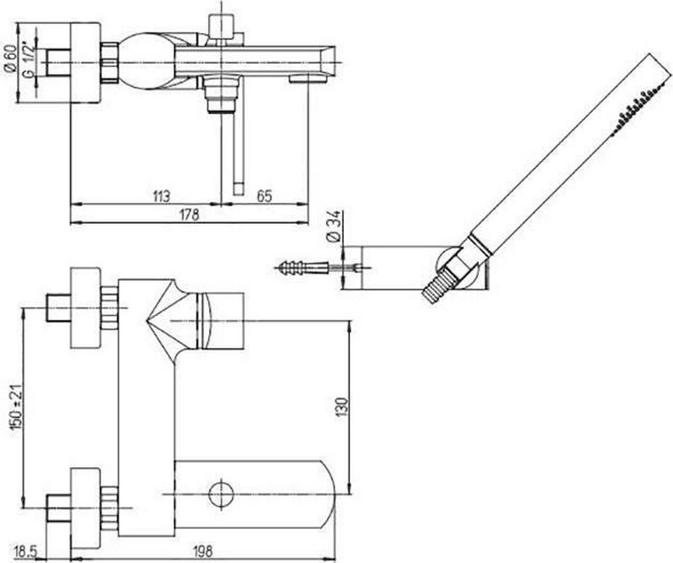 Смеситель Paini Ovo 86CR1052SKM для ванны с душем| 21x12x19