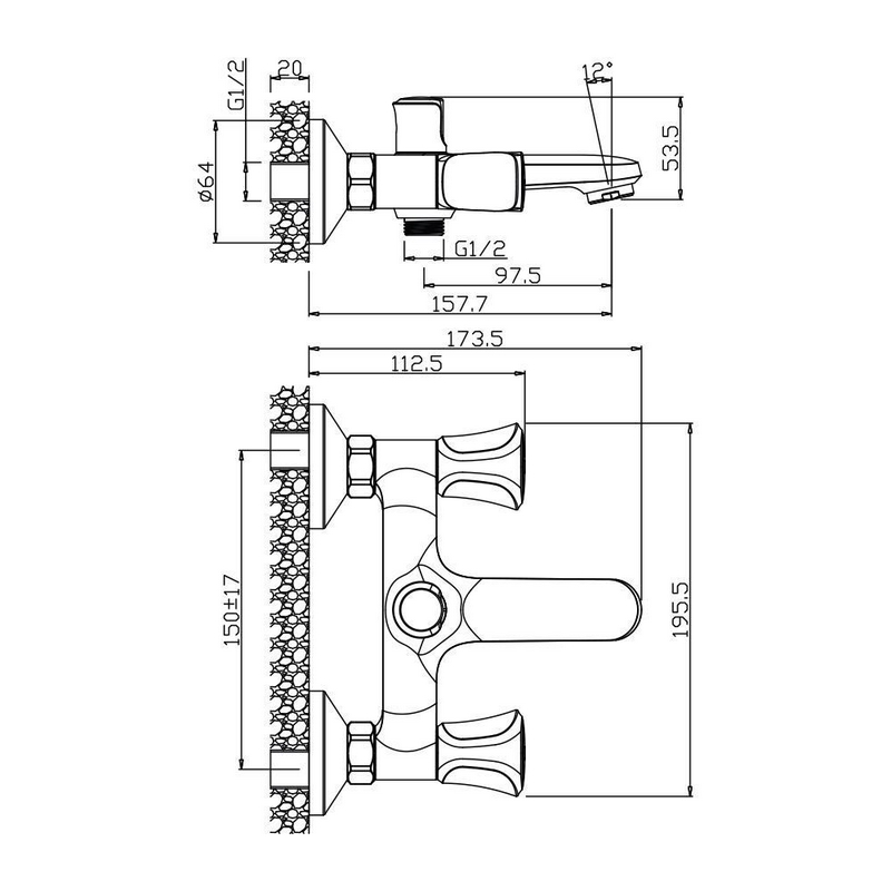 Смеситель Olive'S Vasco для ванны с душем, с длинным изливом| 21x26x40