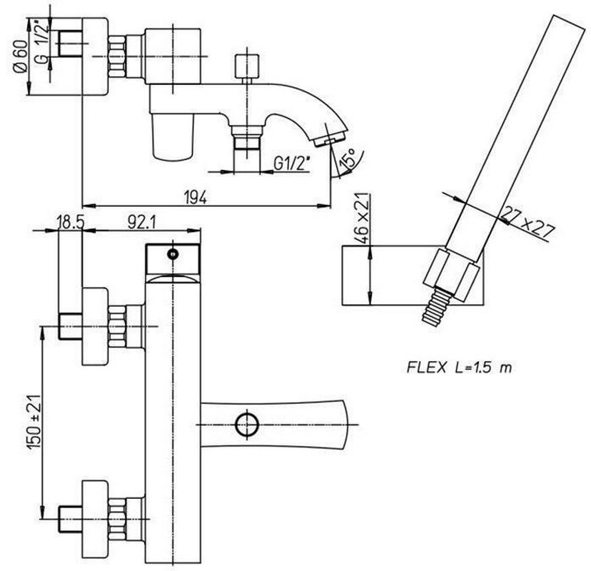 Смеситель Paini Lady 89BY105KM для ванны с душем| 22x12x20