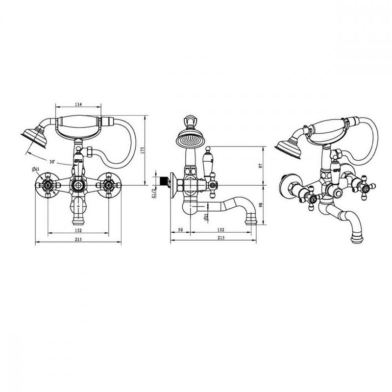 Смеситель Boheme Tradizionale Chromo 273 для ванны с душем| 21x27x21