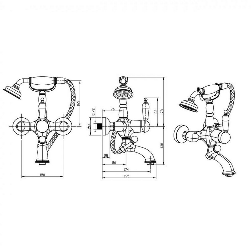 Смеситель Boheme Provanse Ripresa 363 для ванны с душем| 21x31x19