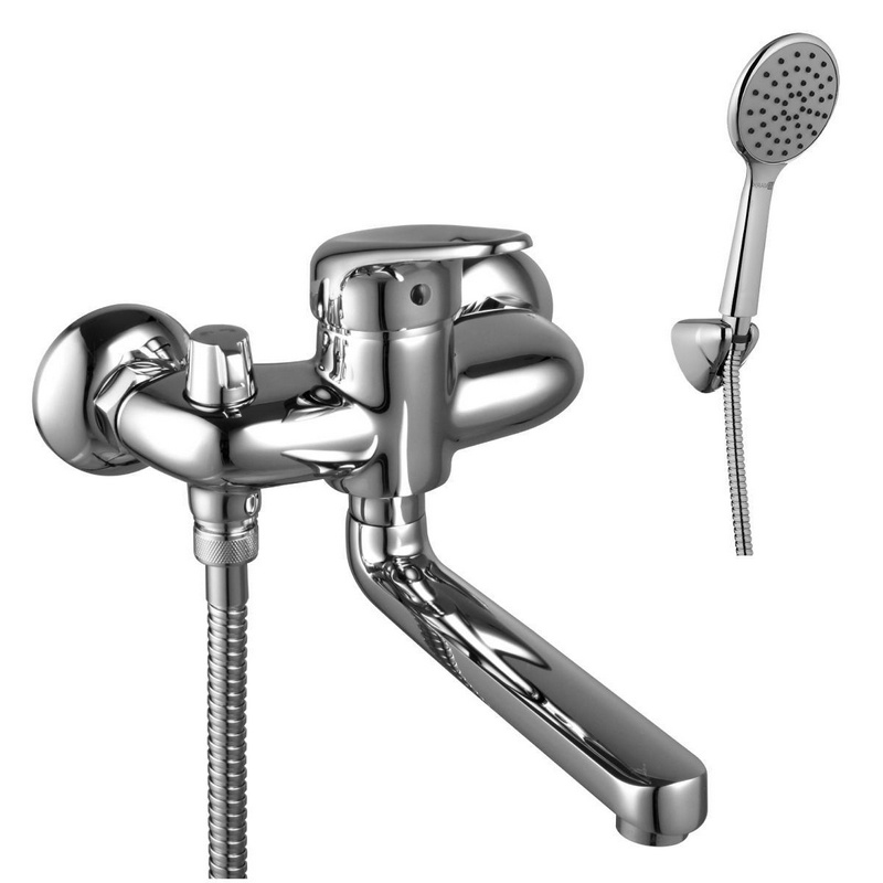 Смеситель для ванны/душа, лейка и шланг в комплекте, цв.хром