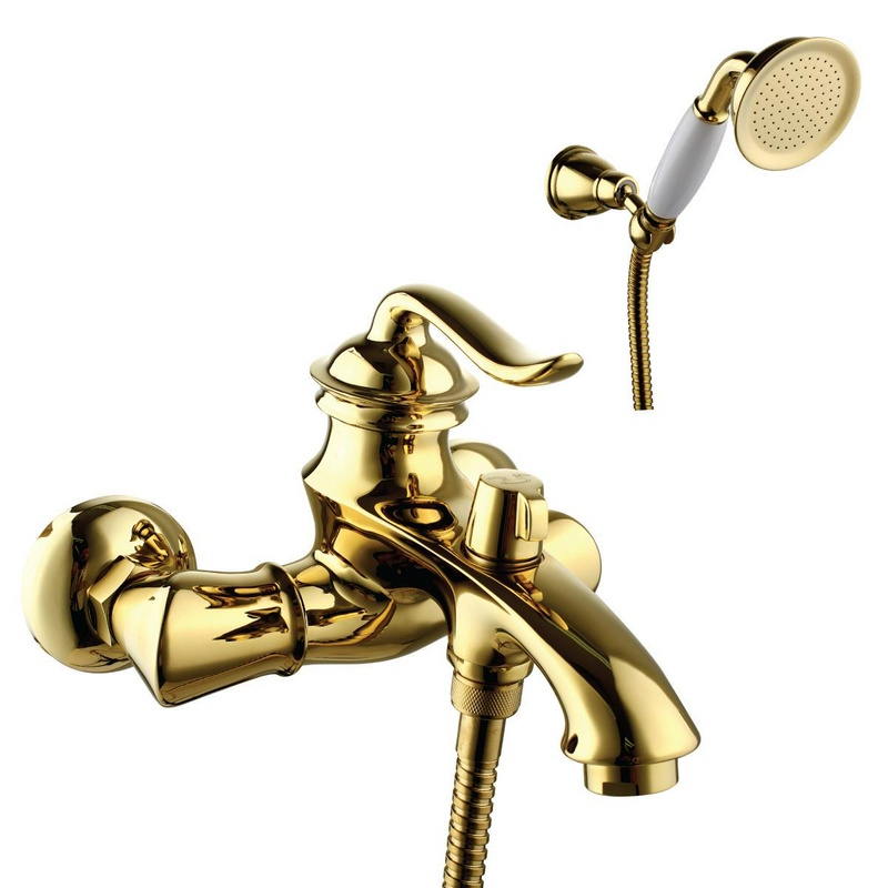 Смеситель для ванны, однорычажный, с душевым гарнитуром, золото ZZ