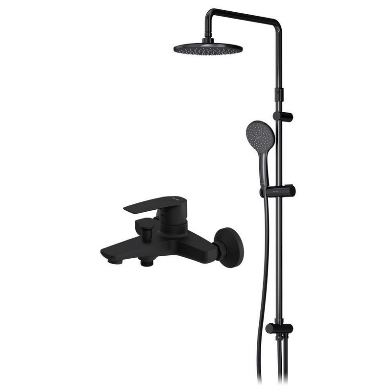 Стойка для душа со смесителем, верхним душем Uno Black, верхний душ латунь, цв. черный матовый ZZ