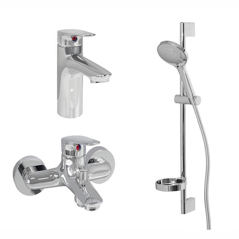Душевой комплект смесителей для ванны Elite, (E32909+E32908+E32910) смеситель, штанга, руч душ, шланг 1.75м, мыльница, крепления в компл,ZZ