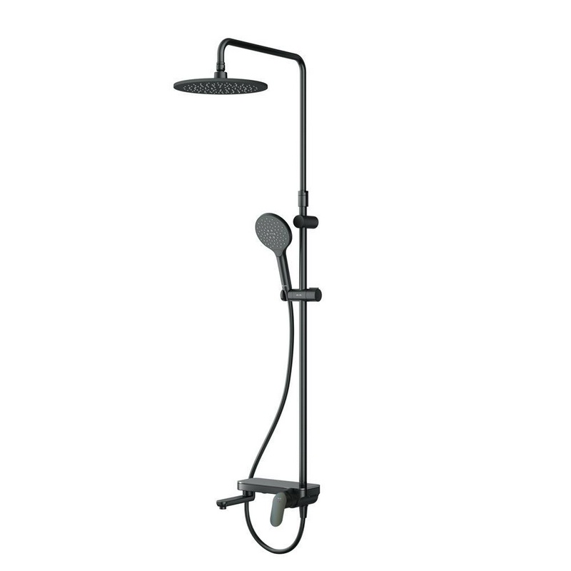 Душевая стойка для ванны и душа Lagos Gun Metal поворотный излив, ручной+верхний душ, шланг, цв. хром