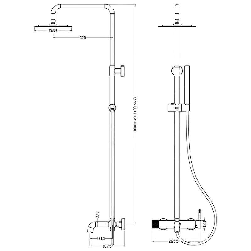 Стойка для душа со смесителем, верхним душем Uno 468-CR Chrome, верхний душ латунь, цв. хром, ZZ