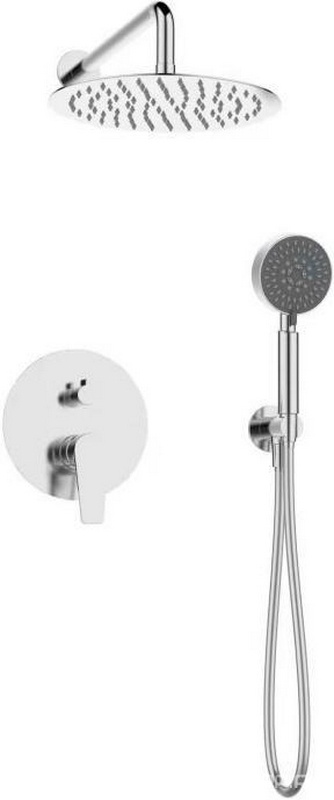 Душевой комплект (смеситель д/д встр.в стену, верхний душ, ручн.лейка, шланг, кронштейн совмещённый с шланговым подсоединением), (цв. хром), Ancona ZZ