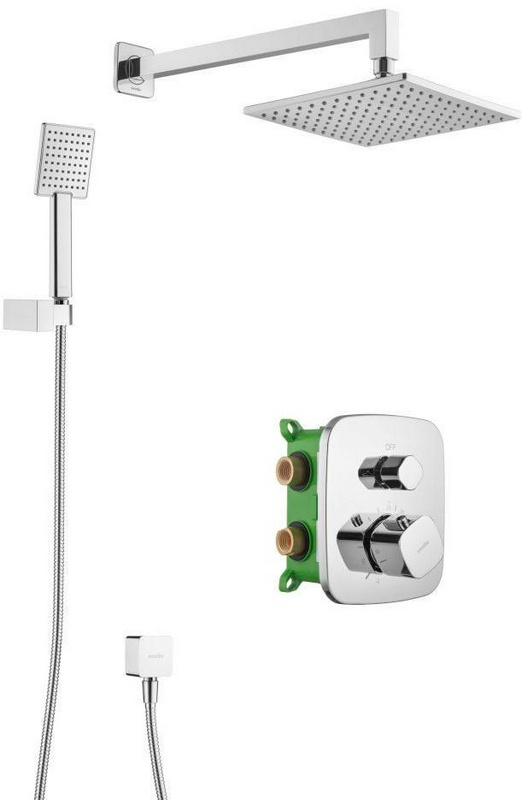 Душевой набор: термостат на 2 выхода (встройка), верхний душ 21см, ручной душ, (цв.хром), Harmony ZZ