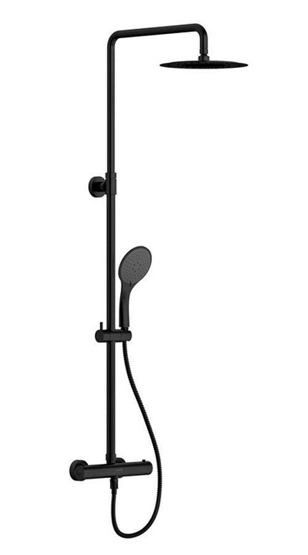 Душевая стойка для душа, термостат, ручной + верхний душ, шланг -150 см, цв. черный матовый XX
