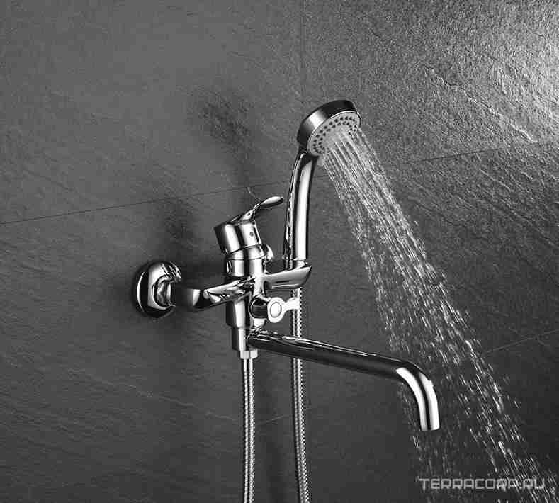 Смеситель для ванны/душа напольный, душевой гарнитур в комплекте, цв. хром