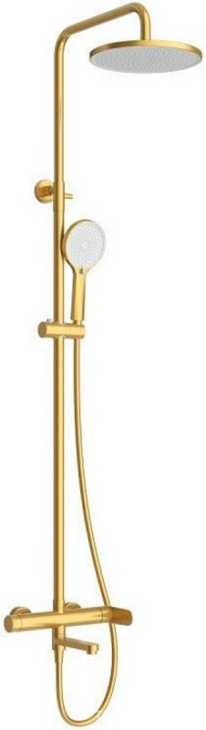 Смеситель-термостат для душа, со стационарным верхн.душем 25см., душевая лейка, шланг в компл., (цв.брашированное золото), Desire ZZ