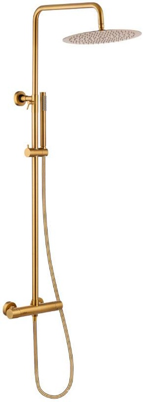Смеситель-термостат для душа, со стационарным верхн.душем 30см., душевая лейка, шланг в компл., (цв.золото), ZZ Swedbe Select 2791GO