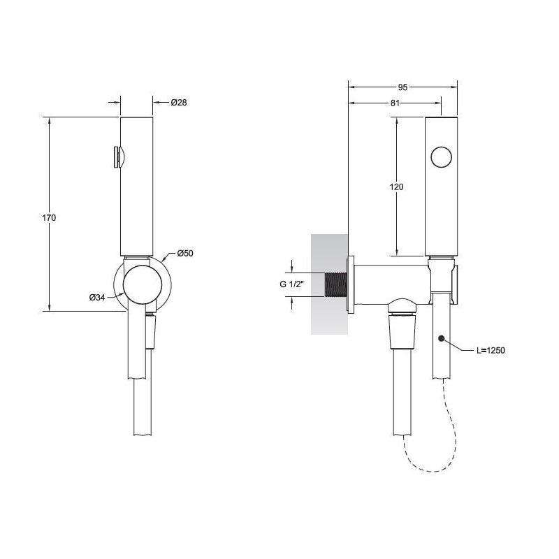 Гигиенический душ округлый (комплект: лейка, шланг 125см, кронштейн с подводом воды), (цв.Black Metal Brushed PVD), Gessi ZZ