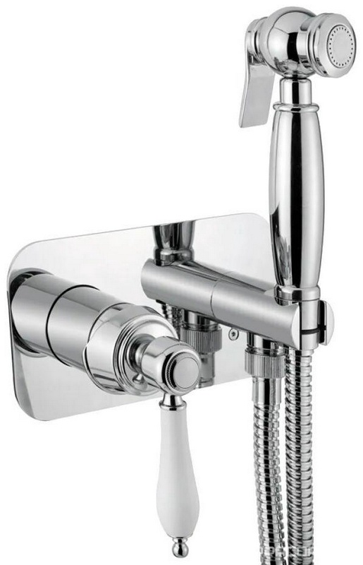 Смеситель встраиваемый в стену, с гигиеническим душем, (цв.хром, ручка цв.белый), Aphrodite ZZ