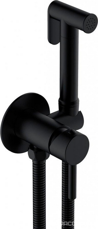 Смеситель совмещённый с гигиеническим душем, (готовый комплект: лейка пластик, шланг 125см., скрытая часть), (цв.черный матовый), Paloma Flat ZZ