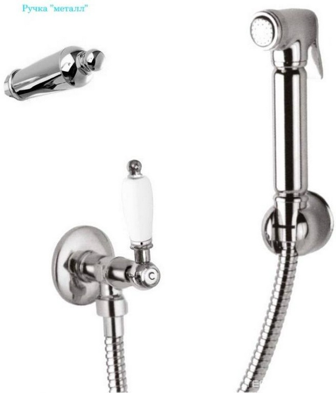 Гигиенический душ со шлангом 120см, запорным вентилем и держателем, (цв.хром, ручка цв.металл), First ZZ