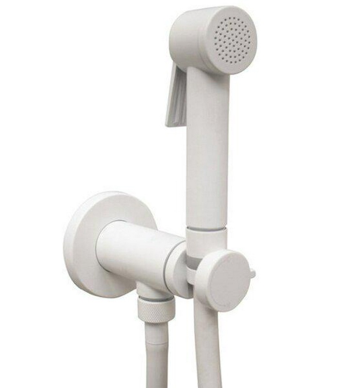Смеситель совмещённый с гигиеническим душем, (готовый комплект: лейка пластик, шланг 125см., скрытая часть), (цв.белый матовый), Paloma Flat ZZ