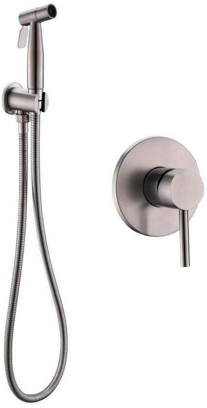 Смеситель совмещ. с гигиенич. душем, готовый к-т: лейка, шланг, скрытая часть, (нерж.сталь цв.сатин), Etna ZZ