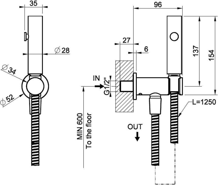 Гигиенический душ округлый (комплект: лейка, шланг 125см, кронштейн с подводом воды), (цв.Black XL), Gessi ZZ