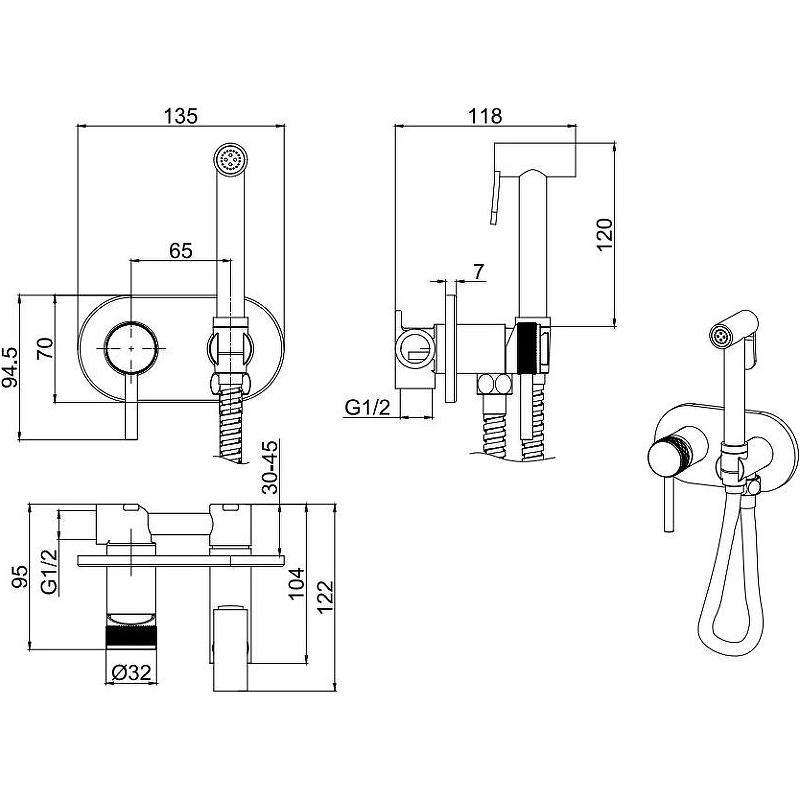 Смеситель совмещённый с гигиеническим душем, (готовый комплект: лейка, шланг 120см., скрытая часть), (металл цв.браш.никель), Priority ZZ