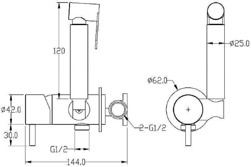 Гигиенический душ Uno 467-GM С ВНУТРЕННЕЙ ЧАСТЬЮ,Gun Metall цв.серый, ZZ