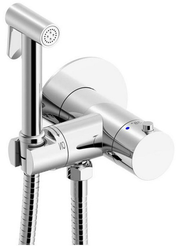 Смеситель-термостат совмещённый с гигиеническим душем, (готовый комплект: лейка, шланг, скрытая часть), (цв.хром), Thermo Rund ZZ