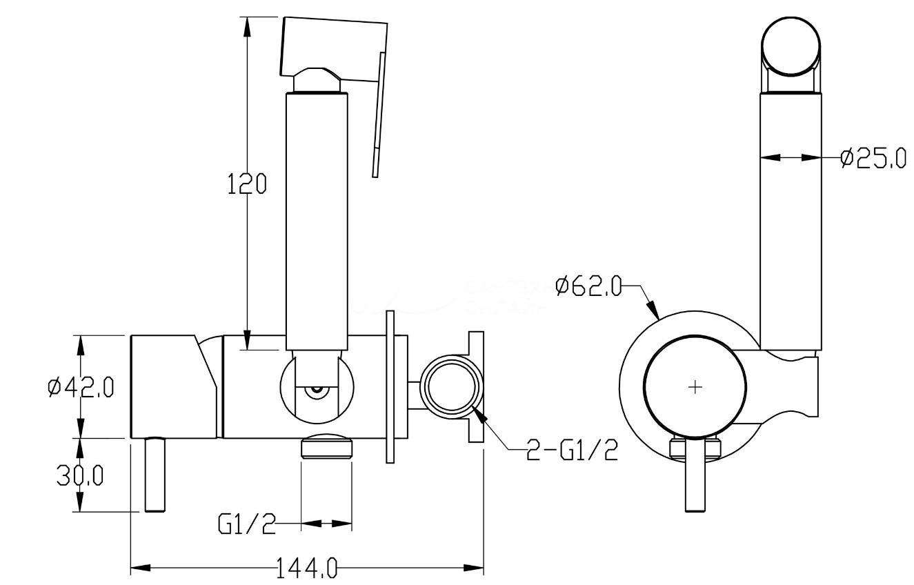 Смеситель встраиваемый с гигиеническим душем, цвет Nikel Brush ZZ
