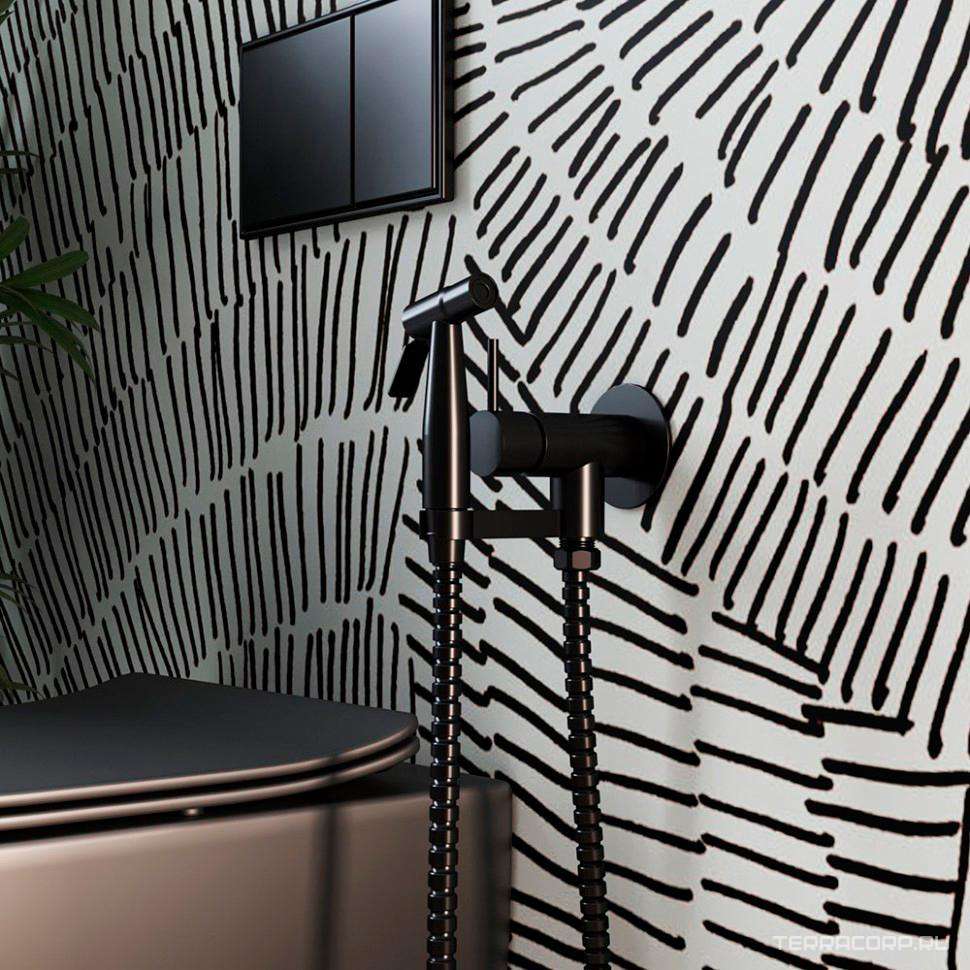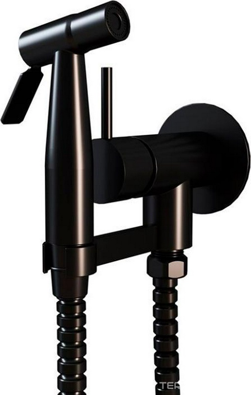 Смеситель совмещён. с гигиеническим душем, (готовый комплект: лейка пластик, шланг 100см.,скрытая часть), (цв.черный матовый PVD), Imola ZZ