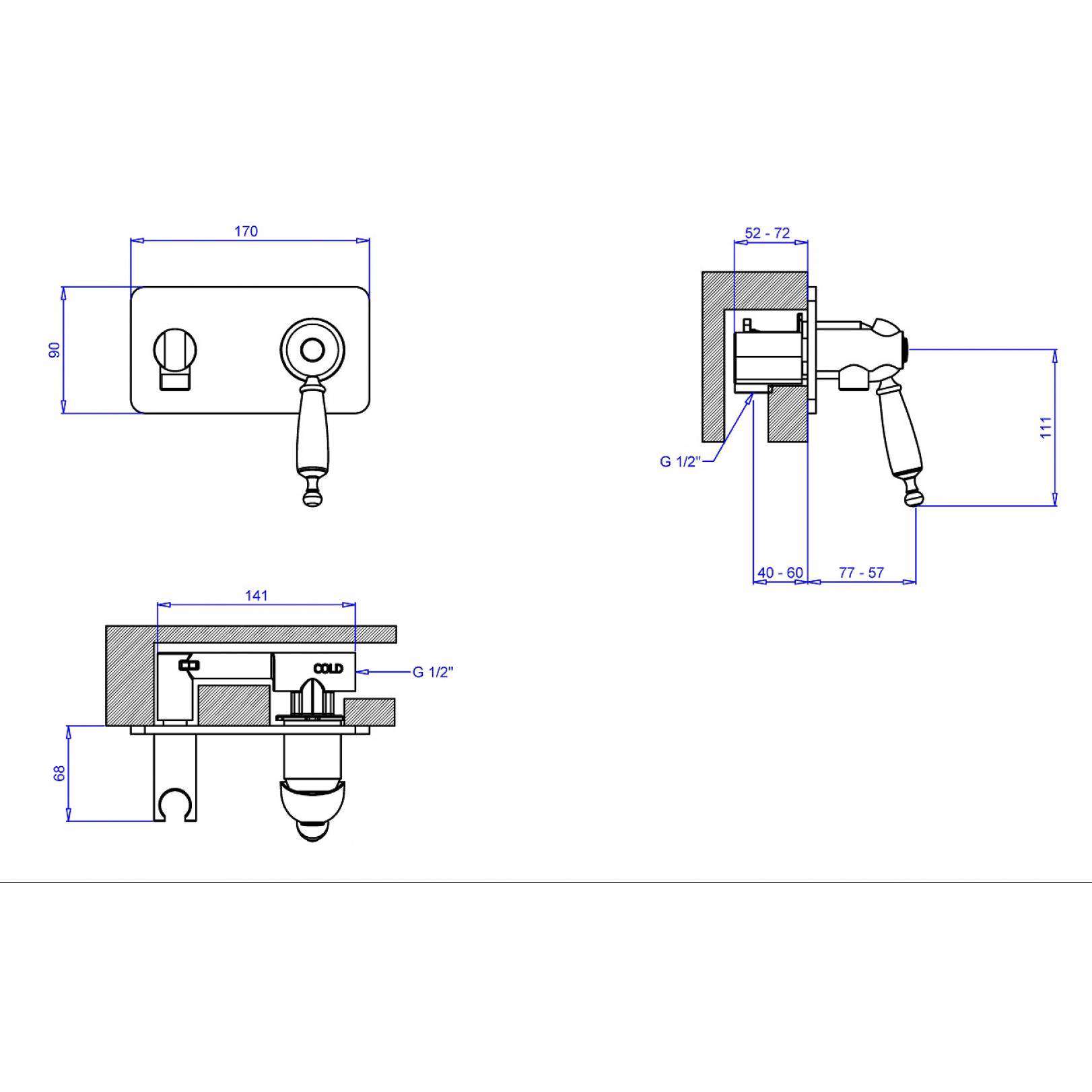 Смеситель совмещён. с гигиеническим душем, (готовый комплект: лейка металл,шланг металл120см.,скрытая часть), (цв.хром), Oxford XX