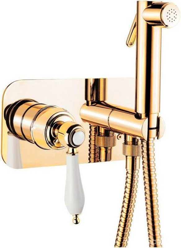 Смеситель встраиваемый в стену, с гигиеническим душем, (цв.золото, ручка цв.белый), Aphrodite ZZ