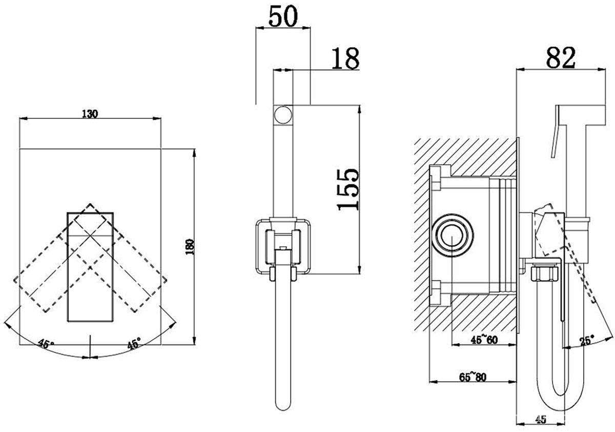 Комплект гигиенического душа (смеситель с внешней и встраив.частью, лейка, шланг 150 см ), цв.серый графит, ZZ