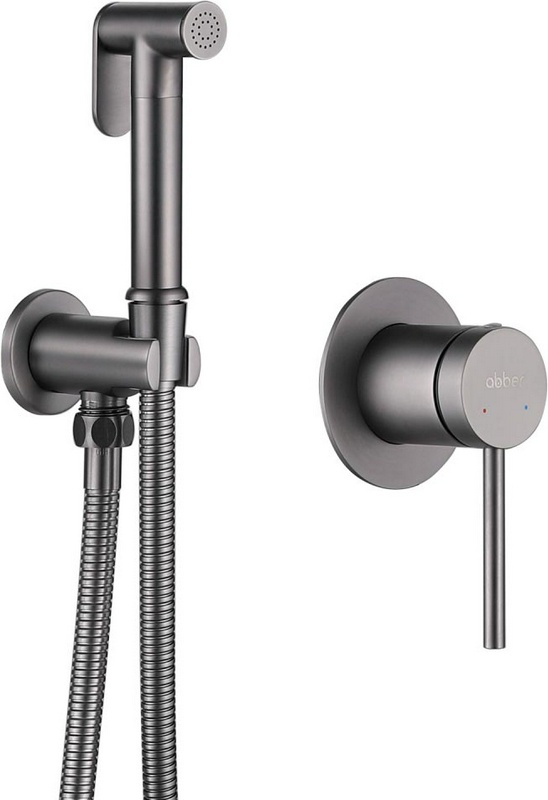 Смеситель совмещённый с гигиеническим душем, готовый комплект: лейка, шланг, скрытая часть, (цв.никель), ZZ Abber Emotion AF8825NG