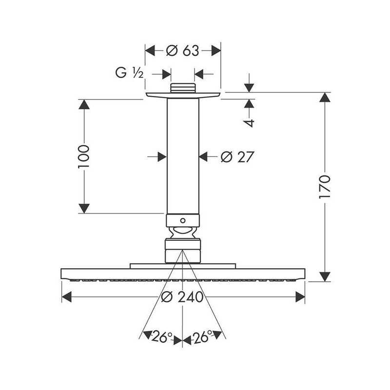 Верхний душ Raindance AIR d=240 мм, с потолочным держателем 100мм, G1/2, Raindance ZZ