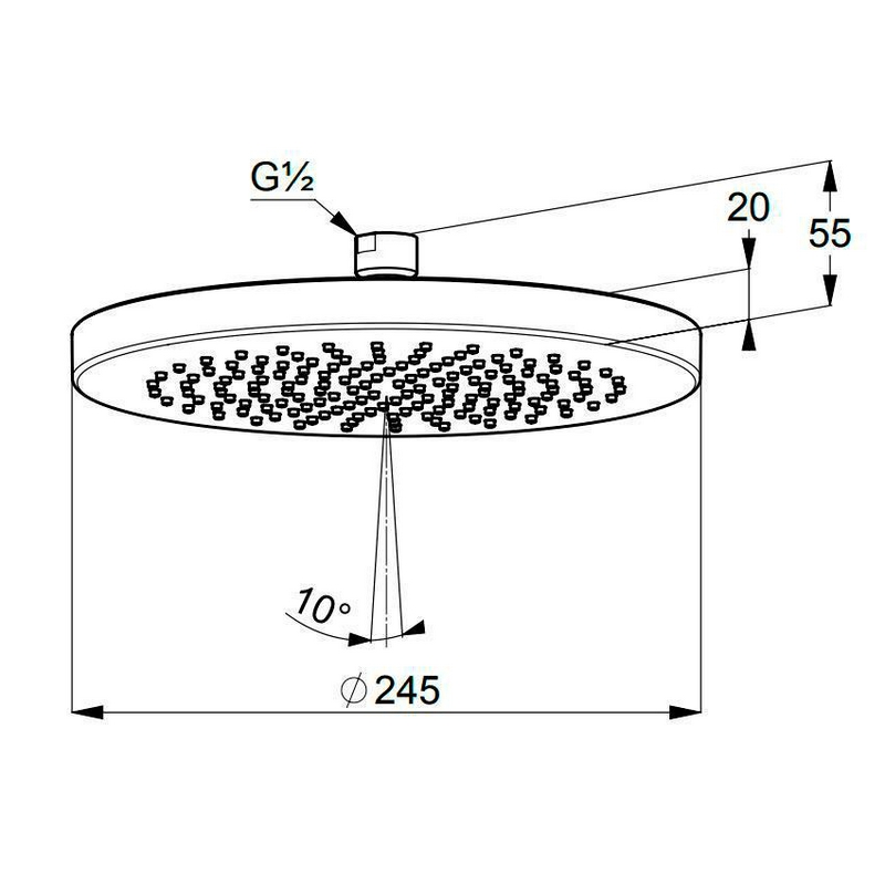 Верхний душ, круглый d=250 мм, подключение 1/2, без кронштейна ZZ