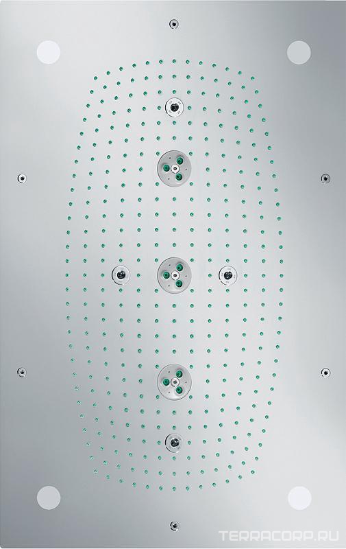 Верхний душ 680х460мм с подсветкой (3 режима душа, 3 вращающиеся форсунки, БЕЗ скрытой части 28414180), Rainmaker ZZ Hansgrohe Raindance 28418000