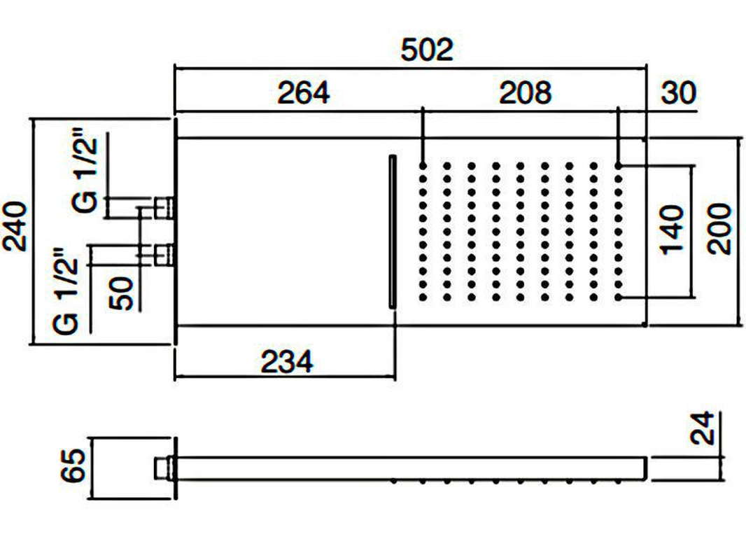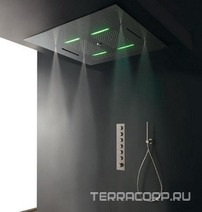 Душ верхний, стационарный, стеновой, прямоугольный 200х502мм, два типа струи, обчный и каскад, 2х G1/2,, (цв. хром), 3M ZZ