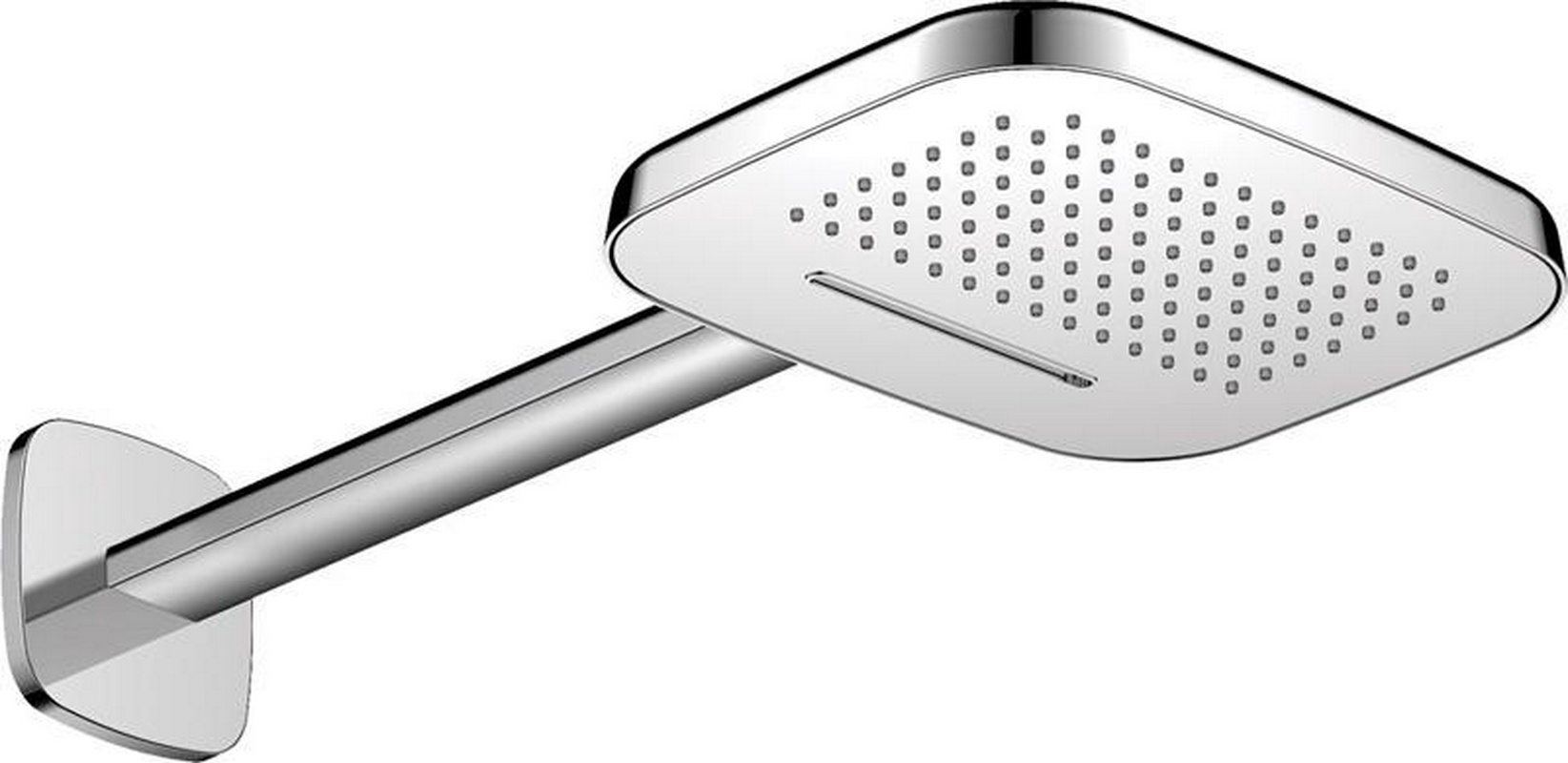 Душ верхний, стационарный, лейка квадратная 300мм, стеновой кронштейн 360мм, G1/2, декор. накладка в компл., (цв. хром), Quadra / X-Change 3М ZZ