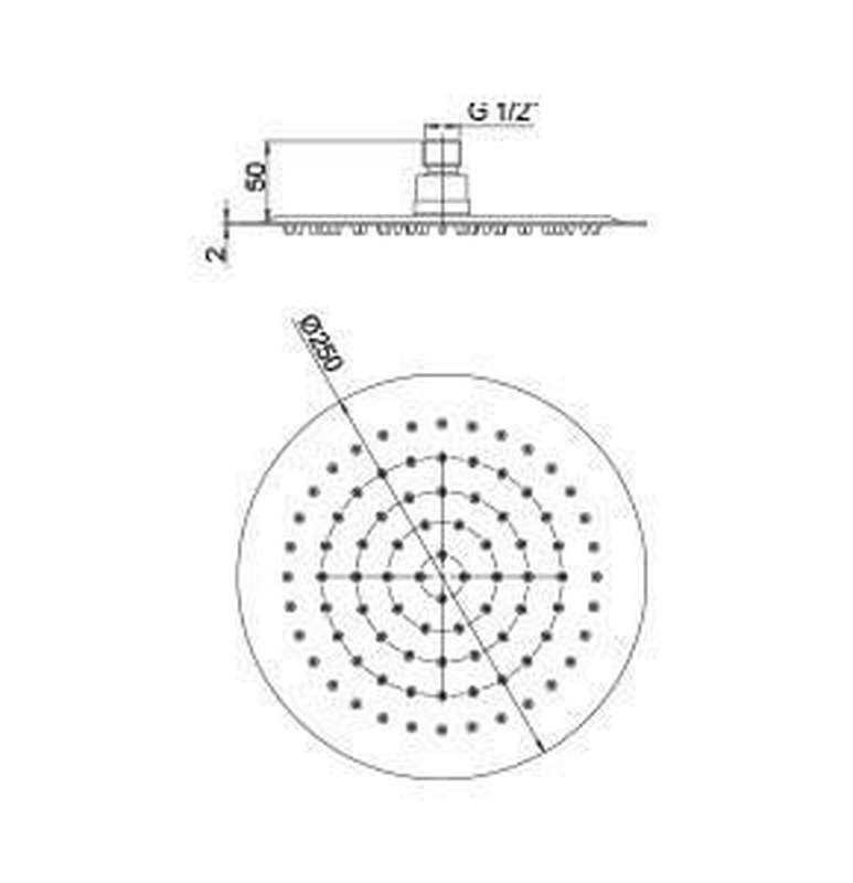 Душ верхний, стационарный, круглый, ультратонкий, 250мм, G 1/2, антикальц., (нерж.сталь), Paini ZZ