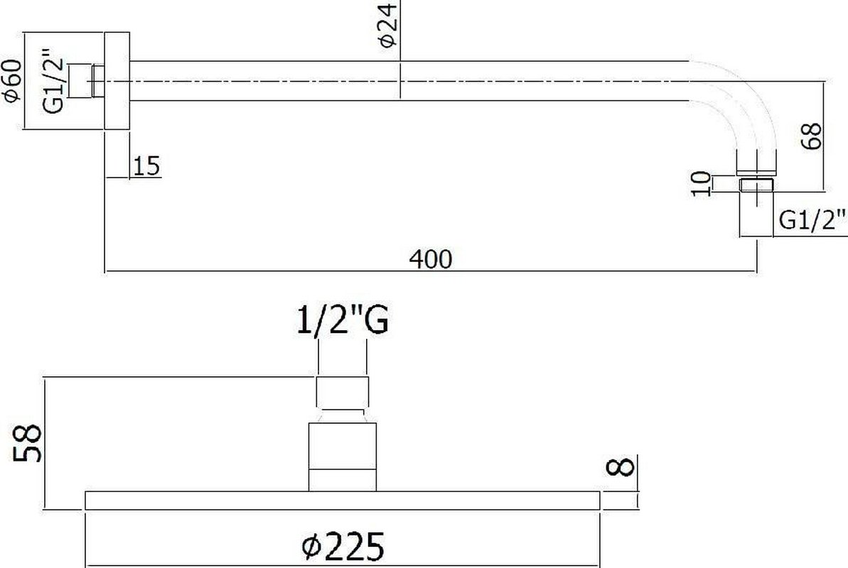 Душ верхний, стационарный, круглый d225мм, G 1/2, антикальц., (латунь цв.хром), Master ZZ