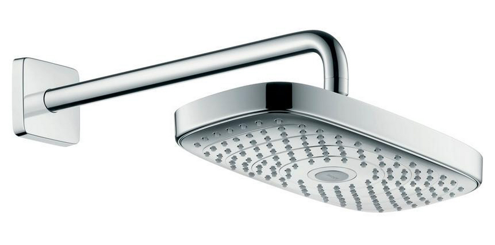 Верхний душ, лейка 300х160мм, стеновой кронштейн 390мм, с ргулир.углом наклона, 2 типа струи, (цв. хром), Raindance Select E 300 2jet ZZ